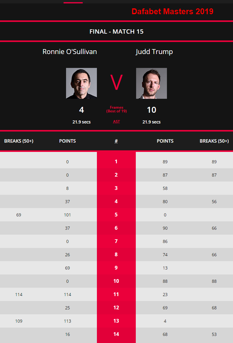 Dafabet Masters 2019 -- в финале он уверенно переиграл многократного победителя Masters Ронни О'Салливана с почти разгромным счетом 10:4!